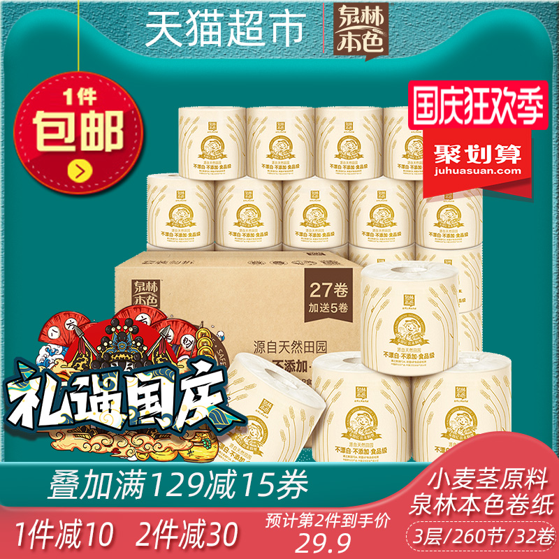 泉林本色卷纸有芯卷筒纸加量本色3层260节32卷泉林卫生纸巾厕纸