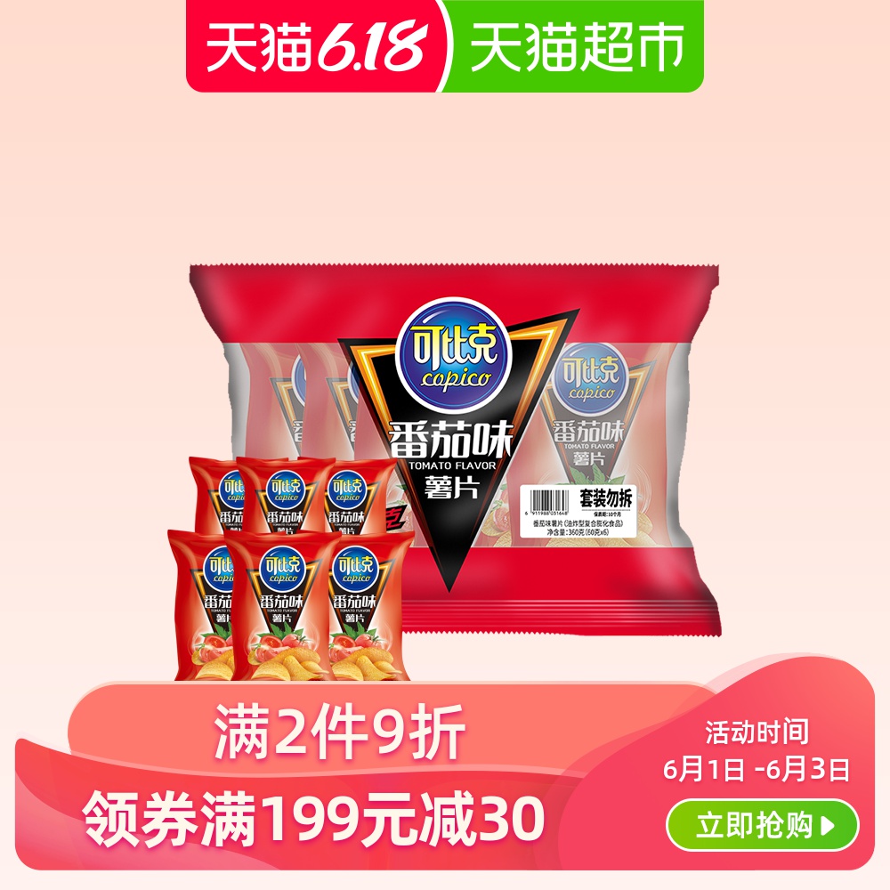 可比克袋装薯片番茄味60g*6包休闲食品网红膨化零食小吃大礼包