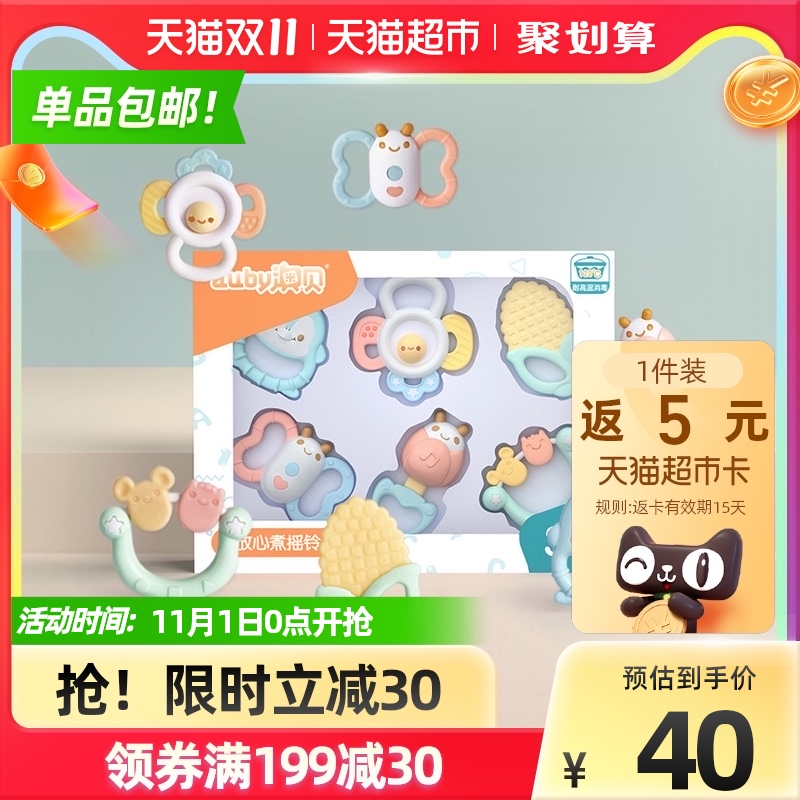 澳贝宝宝玩具手摇铃可安全水煮磨牙棒0-6个月新生幼婴儿牙胶礼盒