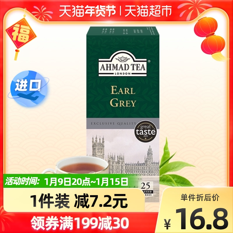 英国AHMAD TEA亚曼进口茶叶英式经典格雷伯爵红茶袋泡茶2g×25包