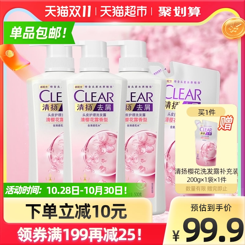 清扬净屑去油樱花沁爽洗发水洗发露500g*3+200g持久留香滋养水润