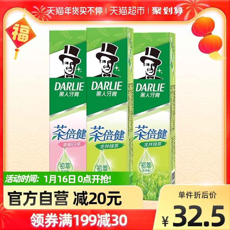 黑人牙膏茶倍健绿茶茉莉白茶140g*3口腔套装清新口气防蛀固齿茶香