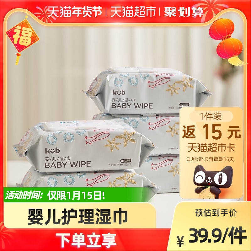 KUB可优比婴儿手口专用湿巾新生儿宝宝湿纸巾带盖湿巾纸80抽*5包