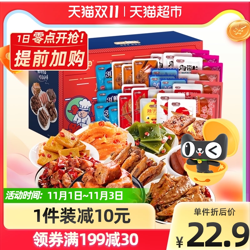 盐津铺子零食大礼包30小包卤味小吃休闲食品鸭脖鸭翅小鱼仔鱼豆腐