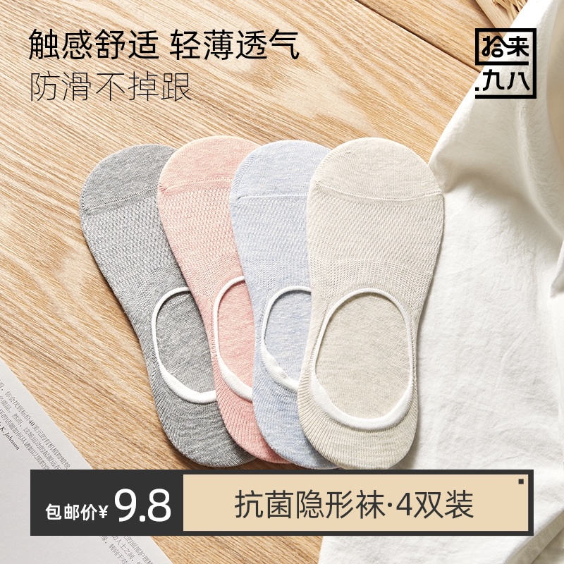 【拾来九八】女士四季抗菌短袜隐形袜4双装春秋款浅口船袜透气