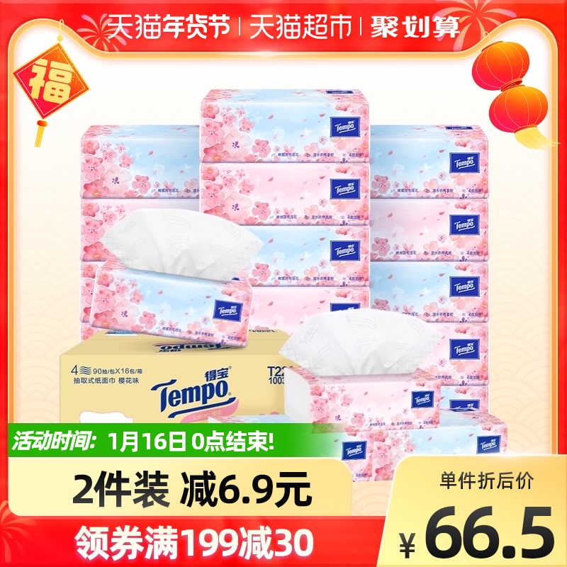 【宋茜推荐】Tempo/得宝软抽限定樱花味抽纸家用箱装90抽*16包