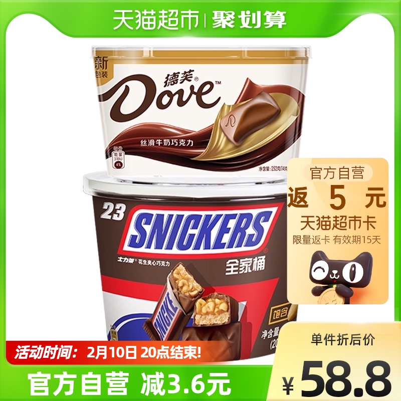 德芙丝滑牛奶巧克力252g+士力架460g全家桶装休闲小吃零食年糖果