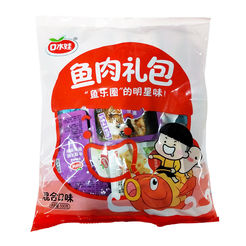 • 天猫超市口水娃 鱼肉零食大礼包500G 鱼豆腐干香干素牛排 豆干香肠烤肠12/4
