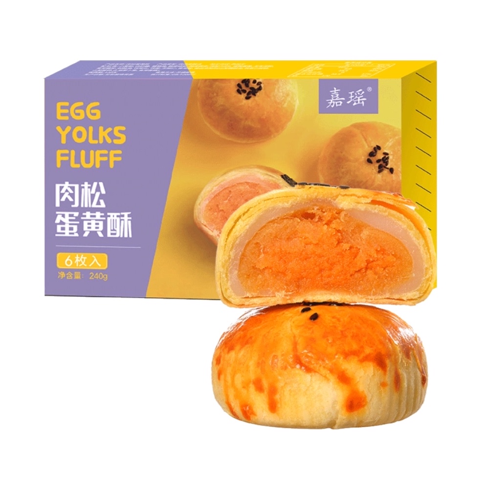 天猫超市包邮嘉瑶肉松蛋黄酥6枚240g*1盒雪媚娘蛋糕休闲月饼手工真蛋黄真咸香又软糯
