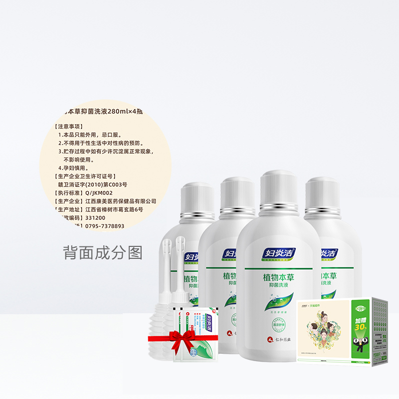 天猫超市【加量不加价】妇炎洁私处洗液套装280ml*4瓶本草抑菌祛味护理液