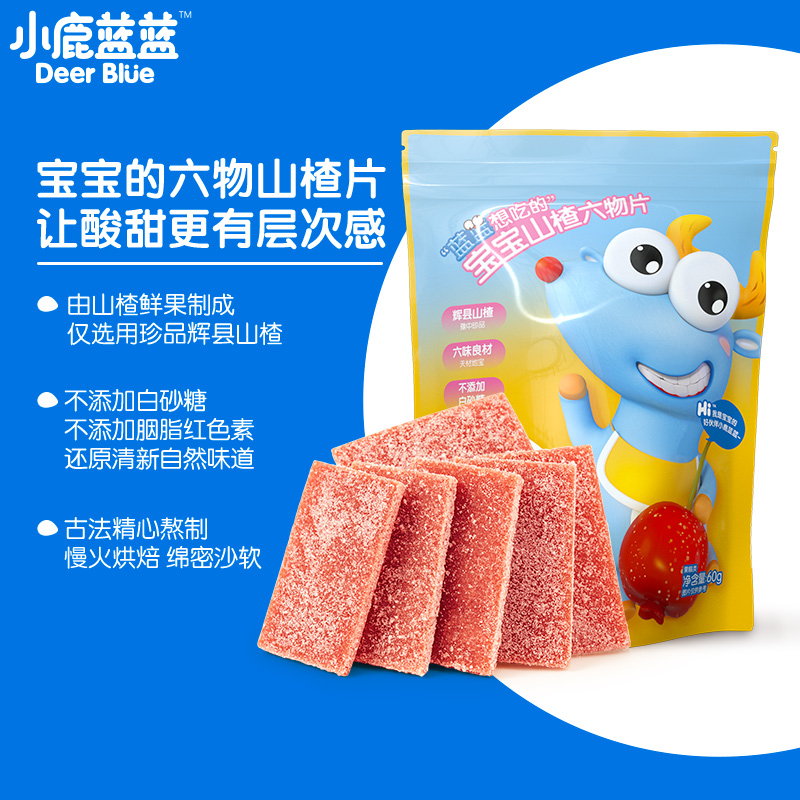 • 天猫超市【包邮】小鹿蓝蓝六物山楂片60g宝宝儿童婴儿零食酸甜可口无白糖01/4