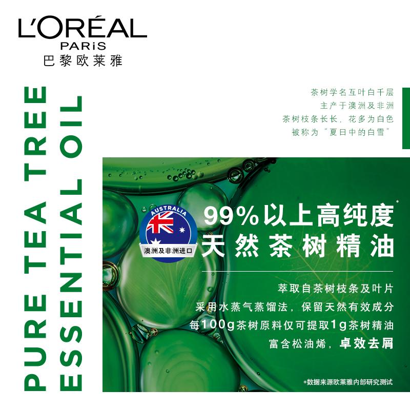 • 天猫超市巴黎欧莱雅茶树植萃去头屑净油洗发露500ml*2植物养头发控油34/4