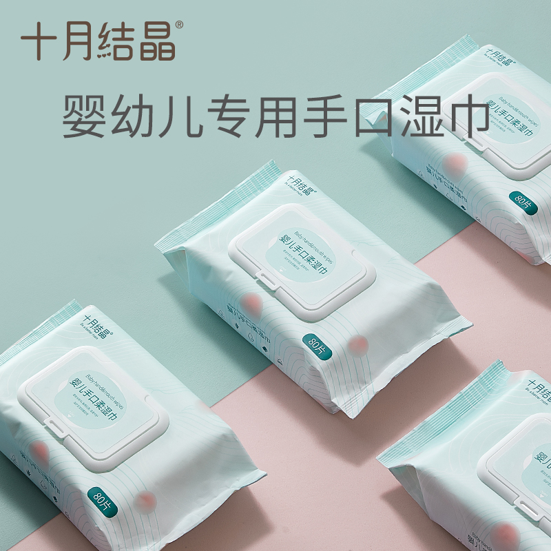 • 天猫超市十月结晶婴儿湿巾手口专用湿巾80抽6包新生儿宝宝湿巾湿纸巾便携34/4