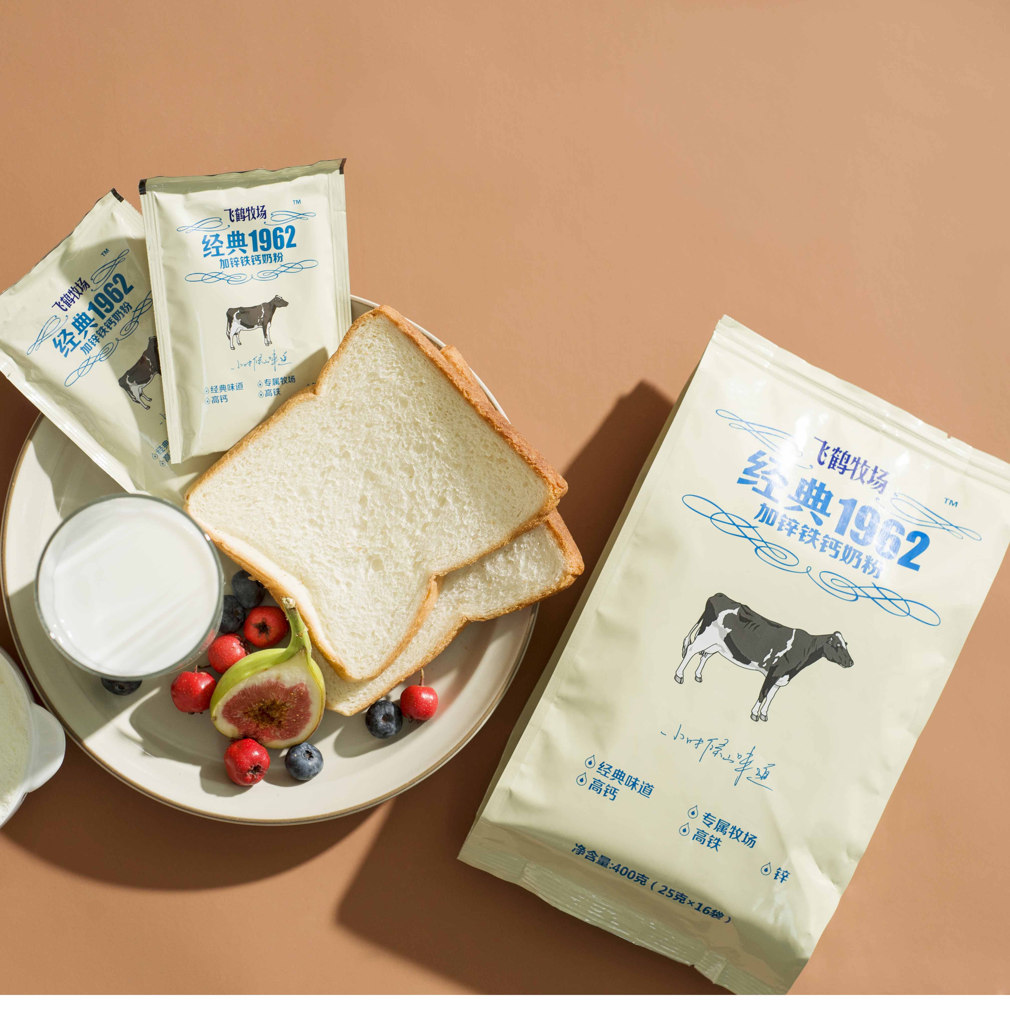 • 天猫超市飞鹤牧场经典1962加钙铁锌成人奶粉400g学生青少年营养早餐补钙奶23/4