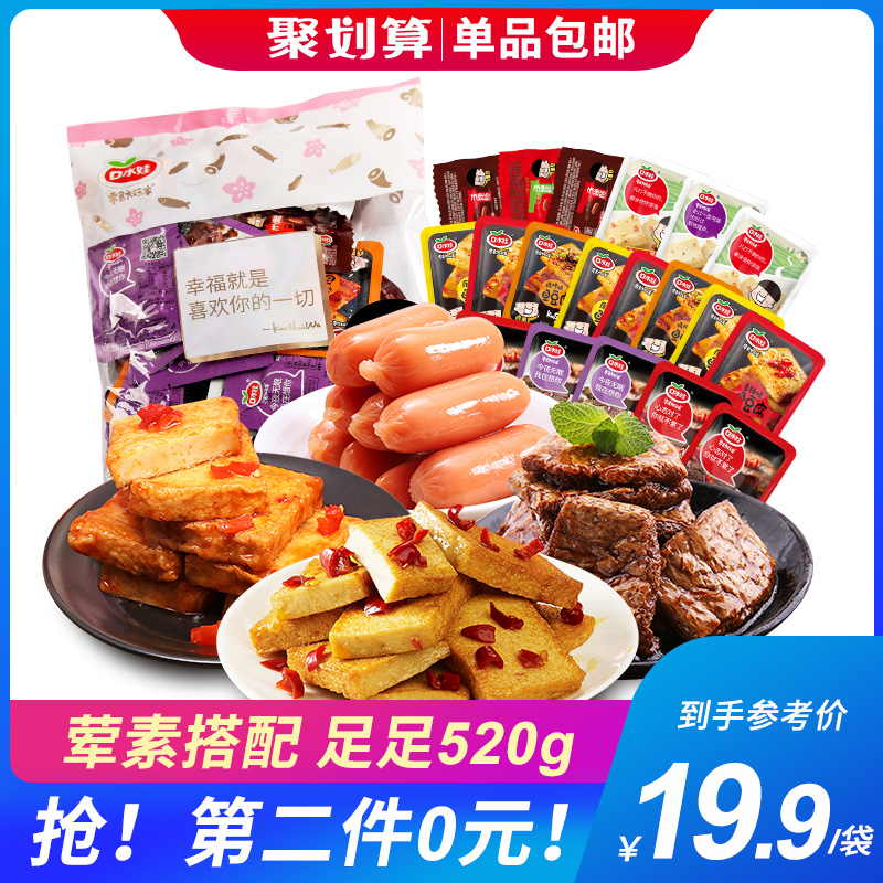 天猫超市口水娃B款 鲜弹鱼肉荤素零食礼包520g 素牛排 香肠 鱼豆腐 豆干实惠组合分享大礼包